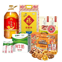 商品名称:沃隆/蓝罐/三只松鼠/伊利/良品铺子/周黑鸭 坚果曲奇果干牛奶滋补肉肉礼 组合 5231g+3000ml