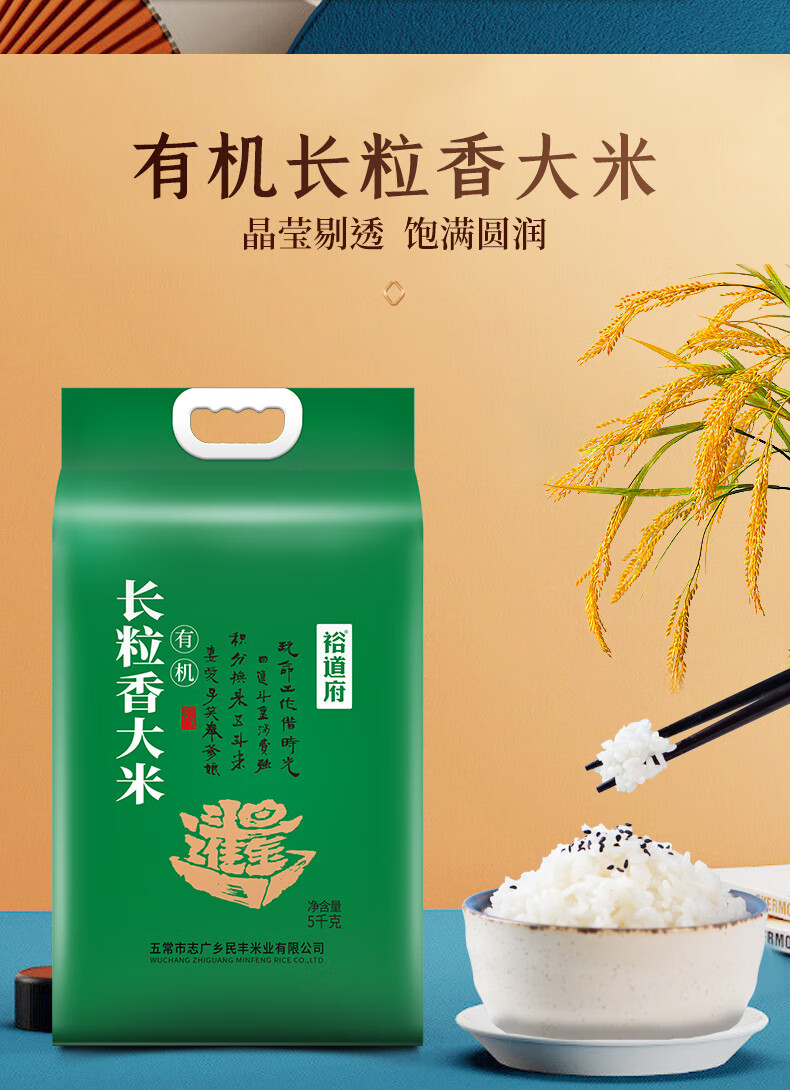 商品名称:裕道府大米 5kg有机长粒香 双层袋真空装