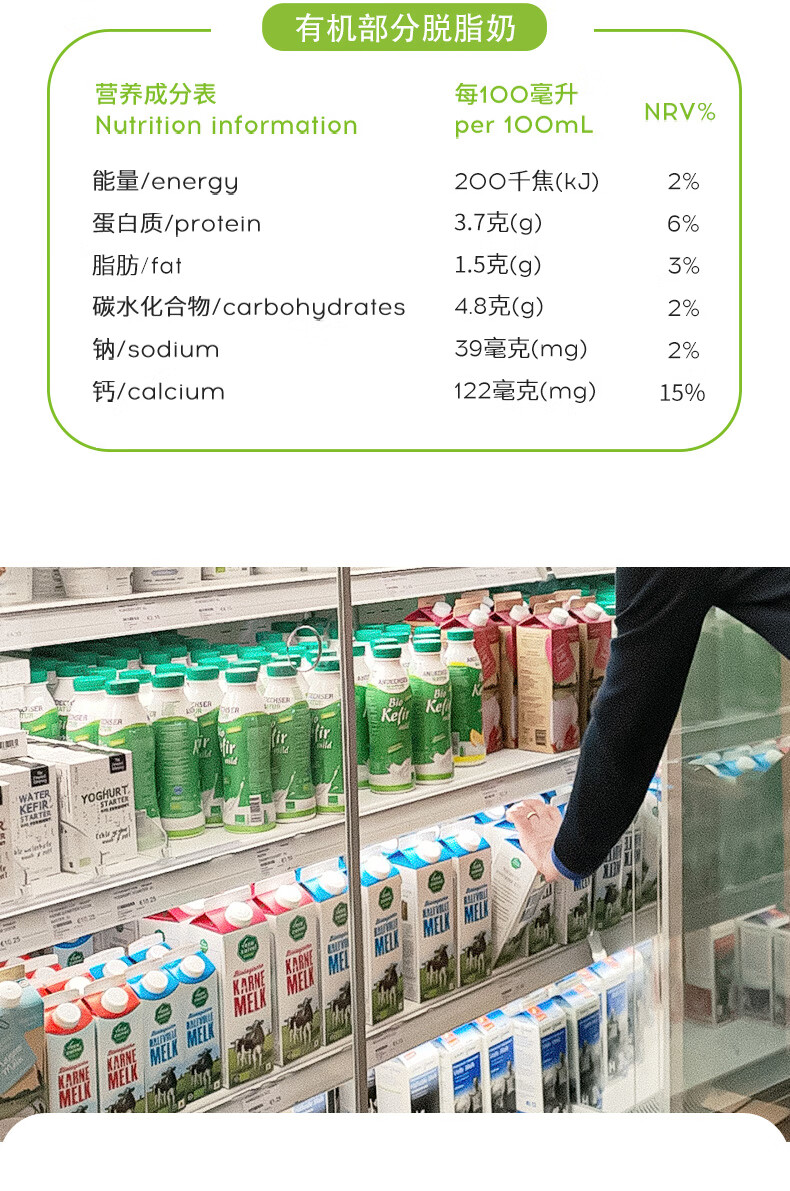 商品名称:乐荷 荷兰进口有机部分脱脂纯牛奶1L*12